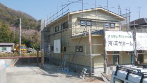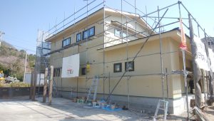 松山市堀江町T様邸の外壁左官塗り壁下地完成です。これからサッシ回りのシールを入れていきます。最近天気もいいので、外部も順調に進むと思います。左官さんが外壁を塗り終わると足場も解体しますので、外壁が全部見えてきます。軒天は杉の無垢材を張っていますので、外壁の明るい雰囲気の色あいとでとってもいい感じに仕上がると思います。今から楽しみです。