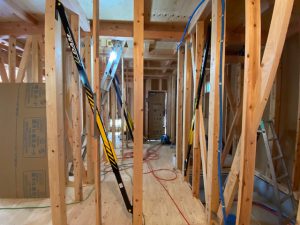 東温市のT様邸の制振ダンパー施工しています。ミヤホームの家は車に例えればフル装備の状態にしています。まずは自然素材の健康住宅を第一の基本としています。(室内は全漆喰塗壁仕様、床は無垢床仕上げ)耐震等級3の構造計算書付きで外壁回りには面材を全面張、高気密、高断熱住宅でC値は0.5以下を目指しています。サッシはトリプル樹脂サッシが標準。外壁は超撥水ドイツ製左官塗壁のSto 仕上げ。24時間換気はドイツ製の第1種の熱交換型。フル装備仕様となっています。