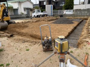 松山市井門町のT様邸の基礎工事も着工開始となり、いよいよ本格的に工事が始まりまし …