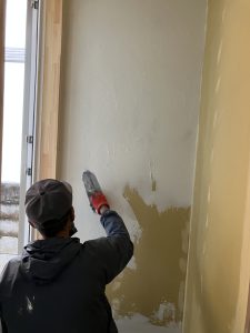 漆喰塗壁が始まりました。