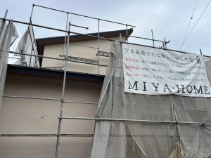 松山市東長戸N様邸の外壁左官塗壁完成です。サイディングと違い塗り壁独特の質感が出 …